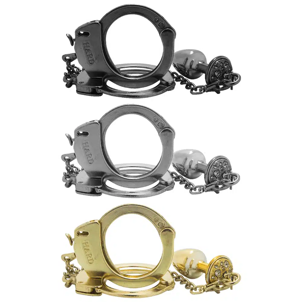 Kit algemas com plug anal cravejado com strass tamanho M – Hard Metal