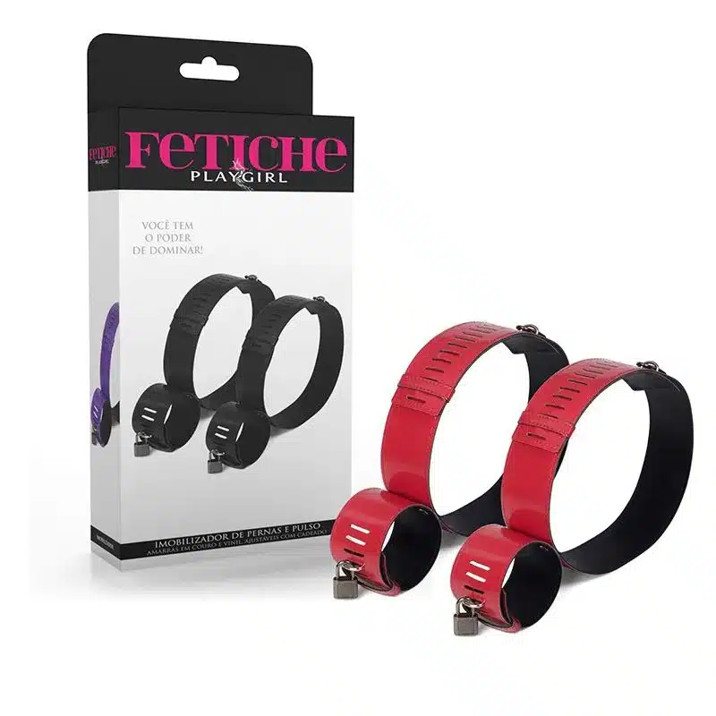 Fetiche playgirl – imobilizador de pernas e pulso com cadeado | cor: vermelho