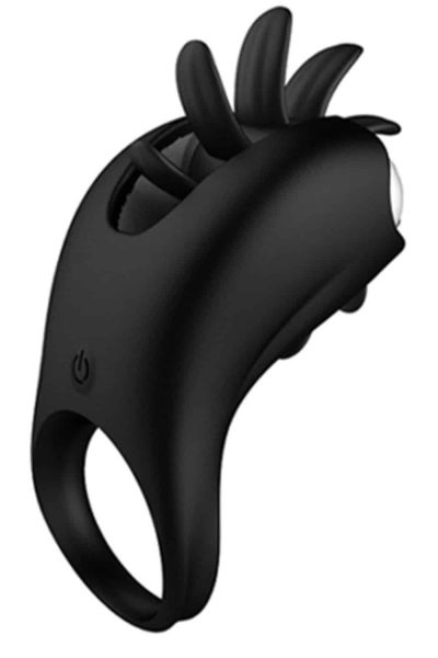 Anel Peniano Vibratório com Rotação de Língua Estimulador de Clitóris – Preto