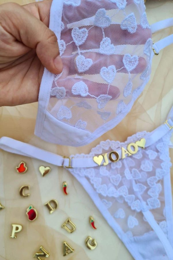 Descubra a perfeita combinação entre elegância, sensualidade e exclusividade com a Calcinha Branca Fio Personalizável Borboleta Tule Coração. Feita em tule bordado de alta qualidade, ela não é apenas uma peça íntima, mas uma declaração de estilo e personalidade.