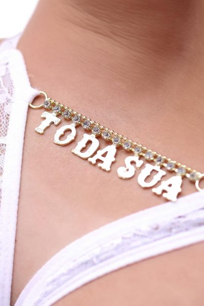 - Decoração em Strass: A frase “Toda sua” aplicada em strass oferece um visual luxuoso e irresistivelmente atraente.