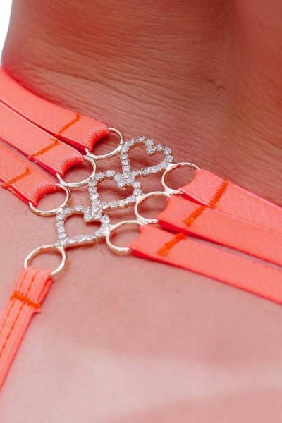 - Conteúdo: 01 Calcinha Laranja Neon Strass 3 Alças Coração