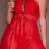 Explore a beleza da Camisola Vermelha de Tule com detalhes em renda. Conforto e estilo para suas noites. Adquira agora e sinta a diferença.