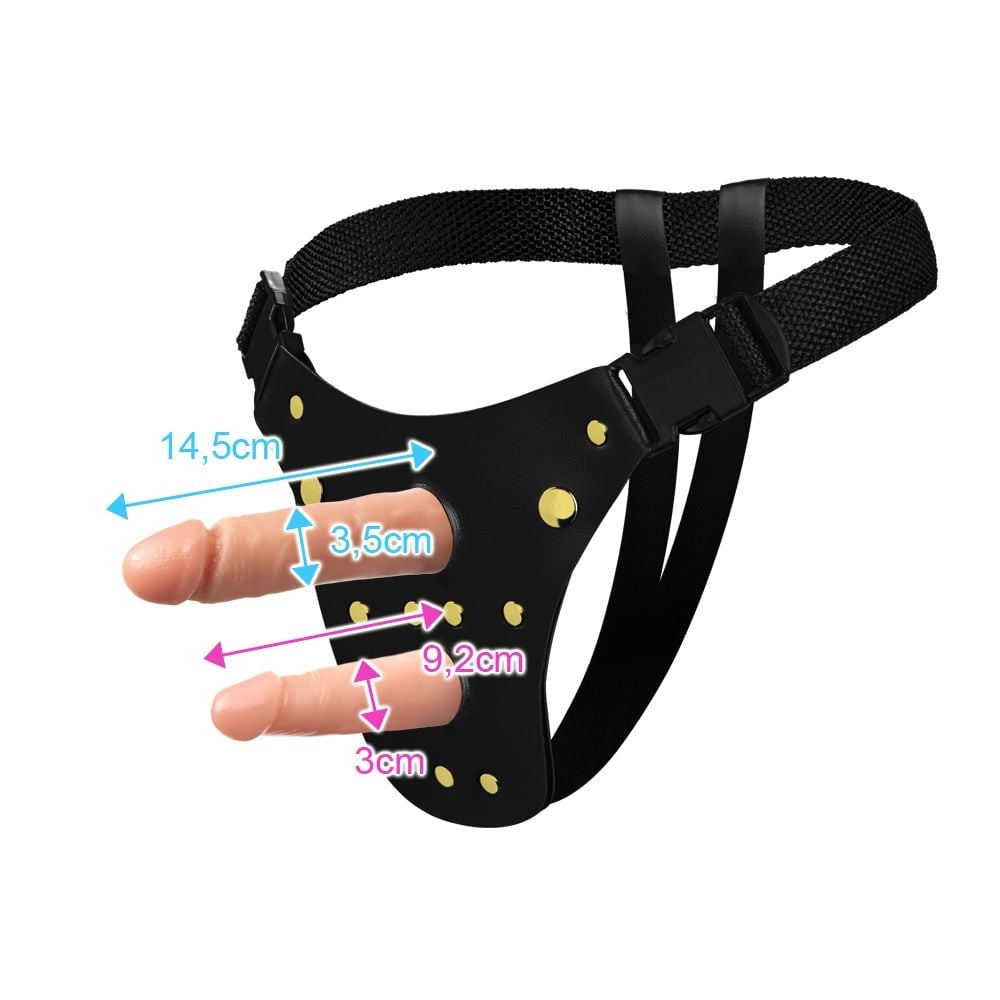 Equipada com duas próteses penianas realísticas, esta cinta foi desenvolvida para estimular tanto o canal vaginal quanto o anal simultaneamente. Os dildos possuem detalhes como glandes definidas e veias salientes, aumentando a sensação de realismo e prazer. Cada prótese é feita de silicone premium, material seguro para o corpo e extremamente higiênico.