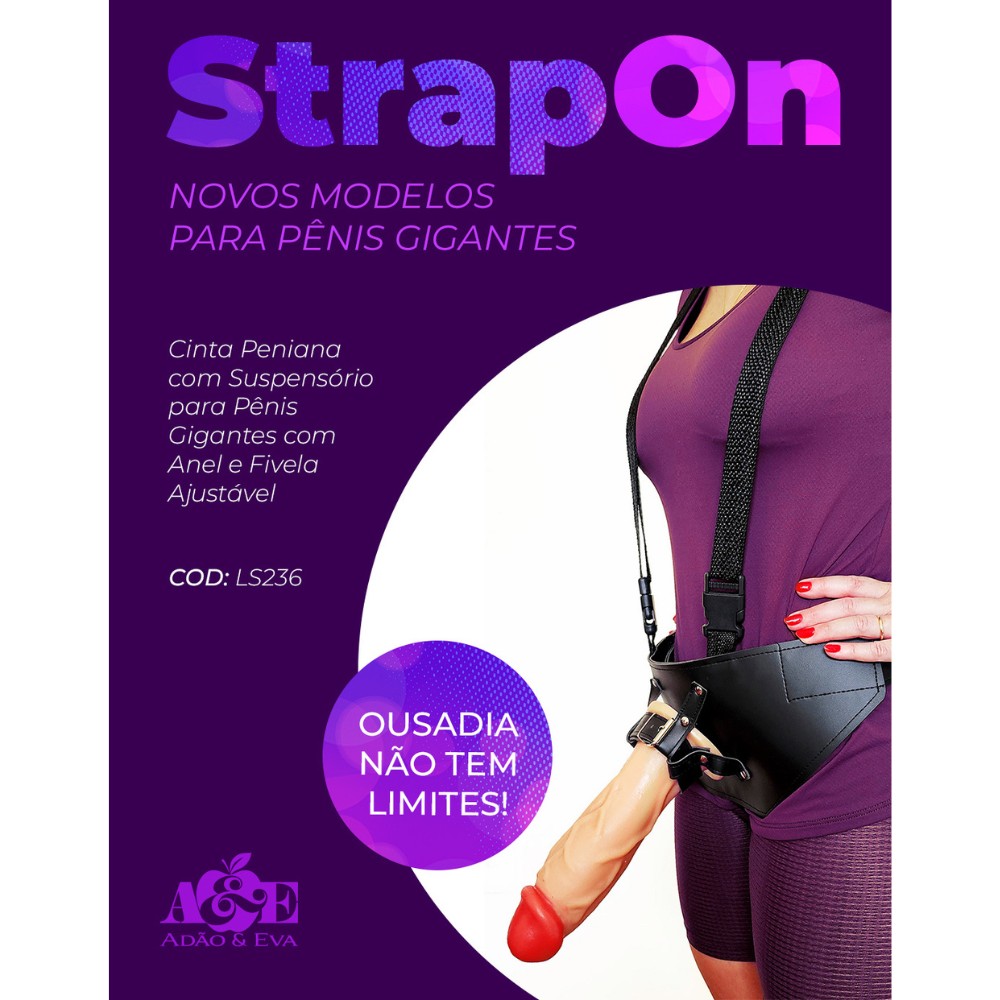 Cinta Peniana com Suspensório para Pênis Gigantes com Anel e Fivela Ajstável – Strap On