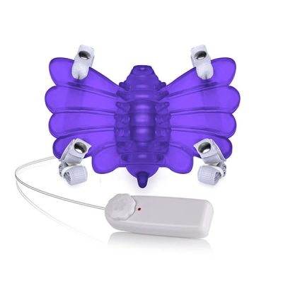 Estimulador de clitóris no formato de borboleta com cerdas estimuladoras, vibração multivelocidade e controle remoto com fio – borboleta mágica | cor: Lilás