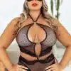 - Body em Arrastão e Renda: O tecido cuidadosamente escolhido abraça suas curvas com um efeito de transparência que instiga e seduz. A combinação entre arrastão e renda cria um contraste perfeito entre o revelador e o delicado, garantindo um visual único.