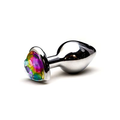 Plug anal Pequeno em alumínio, base em formato de coração com pedra colorida Plug anal Pequeno em alumínio, base em formato de coração com pedra colorida