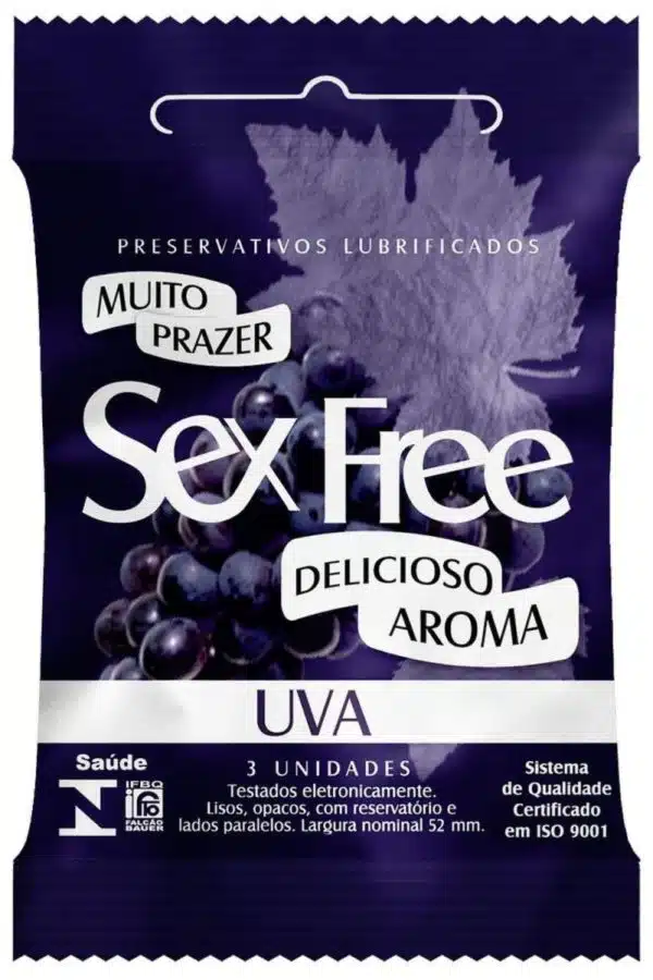Preservativos Lubrificados Aromáticos de Uva – Sex Free (Pacote com 3 Unidades)