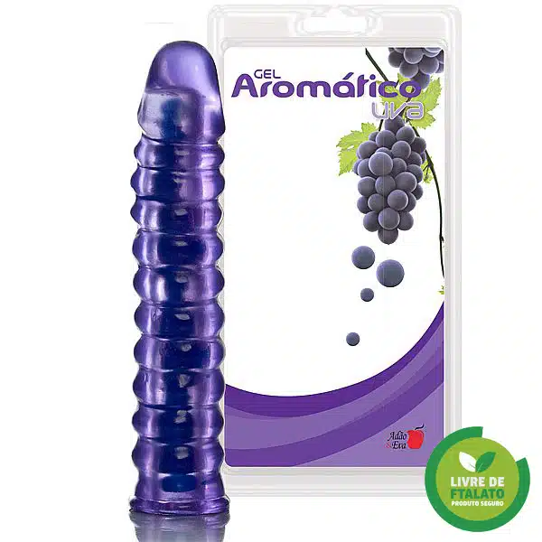 Prótese articulada com formato de pênis em gel com aroma de uva – 23 x 3,5 cm